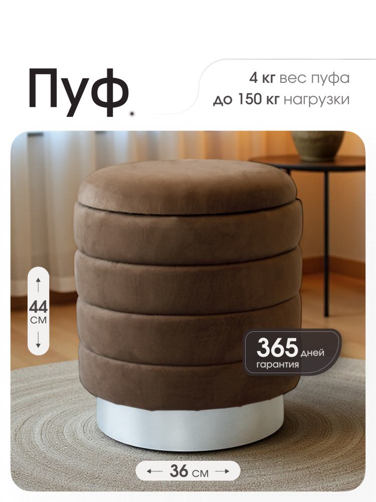 В пуфе имеется отделение для хранения вещей.